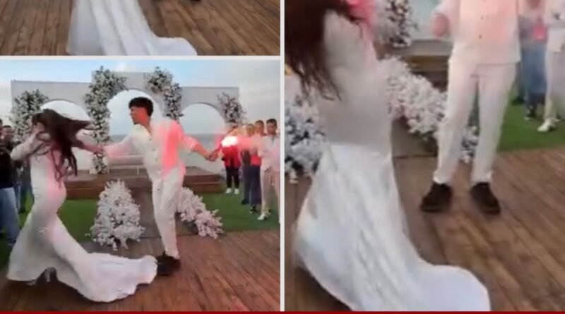 حفل زفاف يتخلله إشعال الفلام ولحظة مفاجئة مع العروس